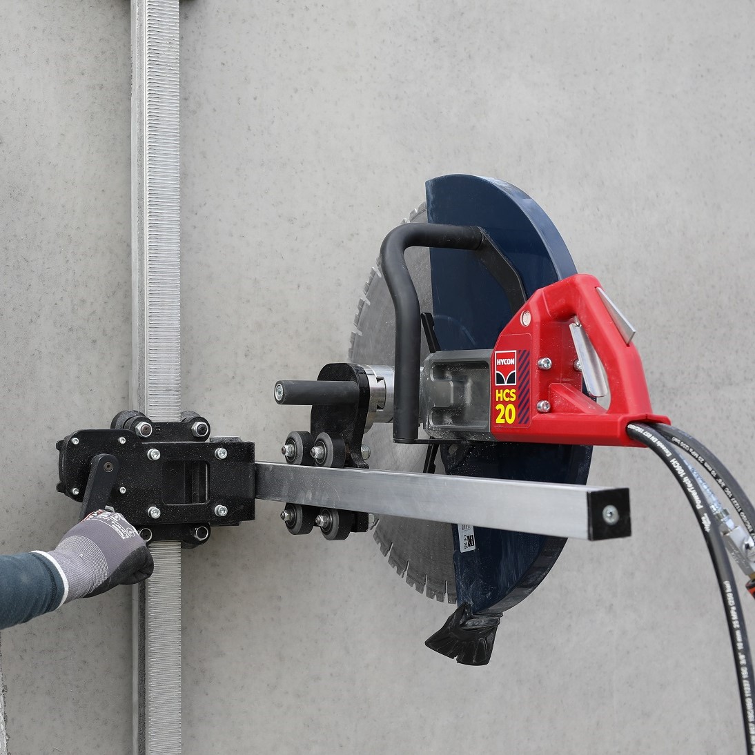 The Hycon SawEZ guide rail is a unique system developed to enable contractors and semi-professionals to mount a saw without having to stand with a heavy and large wall saw. And at the cost of one tenth of other known wall saw systems.