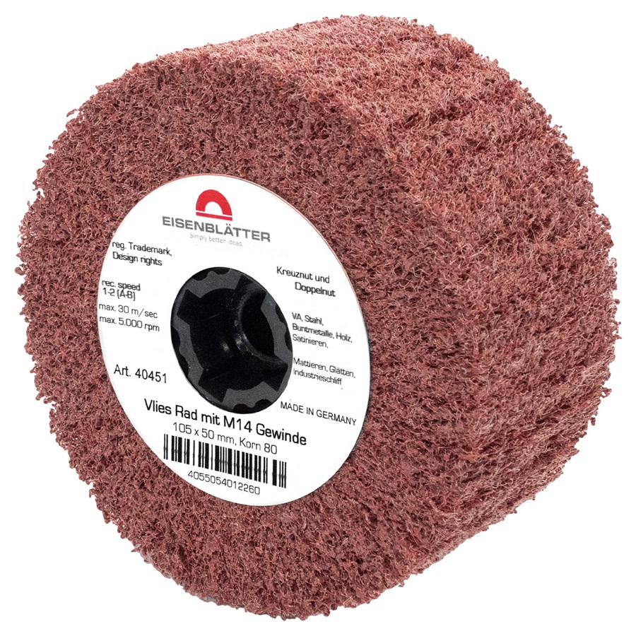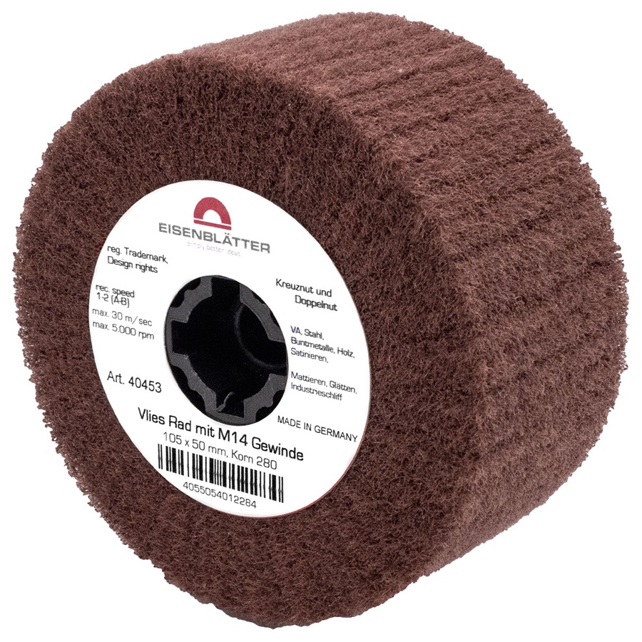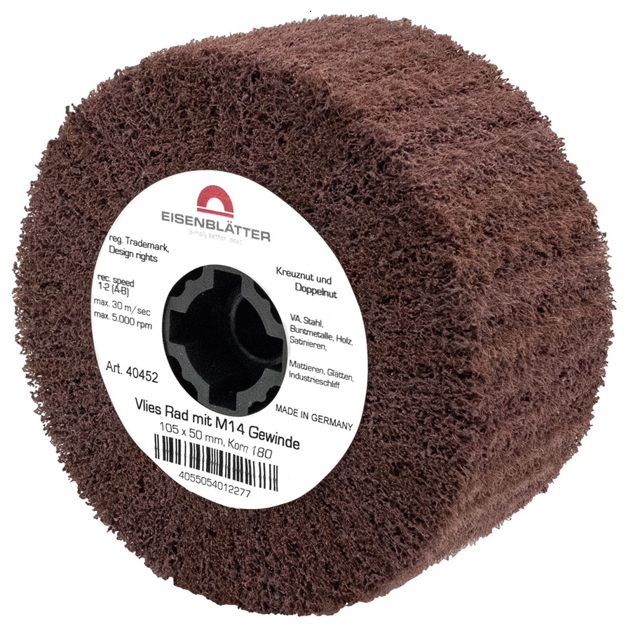 The Eisenblatter Fleece wheel has very high quality nylon fleece for a particularly long service life. Creates a shadow free industrial finish