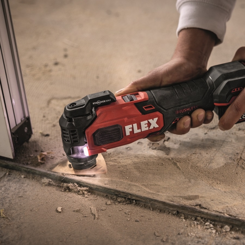 The Flex MT 18.0-EC C Cordless Multitool can be used for a wide range of applications such as sawing, cutting, cutting out wood, metal, plastic and plasterboard. Remove old tile grout and adhesive, scrape off silicone grout, paint and carpet adhesive, sanding profiles and in corners.