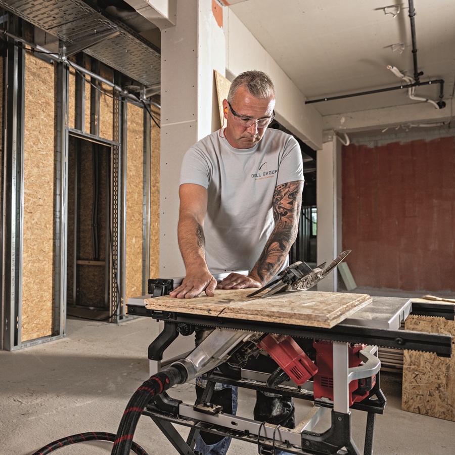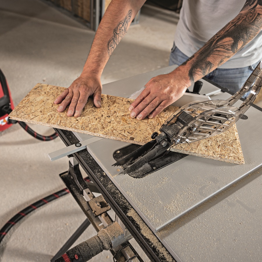 - Extremely lightweight cordless table saw for maximum mobility on the construction site. Can be fixed to the folding base frame without tools (optionally available as an accessory)