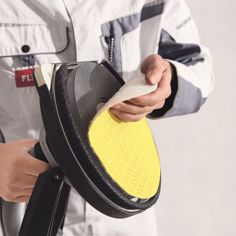 - Effective dust extraction from between the brush ring and the sanding pad prevents clogging of the abrasive and promotes a dust-free working environment