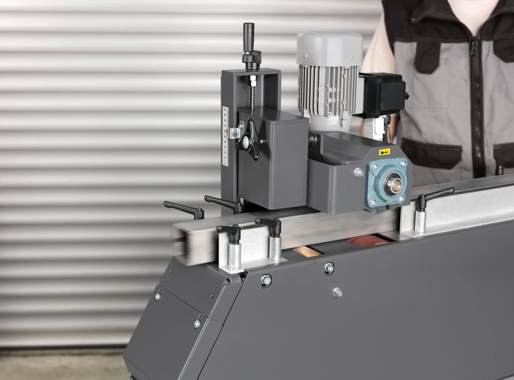 Fein GIL linear grinding module for graining and finishing of square pipes, profiles and flat materials. Fits on the GI150 belt grinding machine.