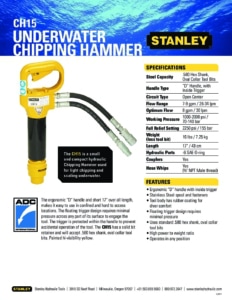 The Stanley CH15 underwater chipping hammer is used by commercial divers for light to medium chipping and breaking tasks in concrete and rock.